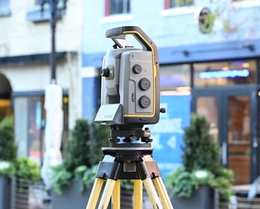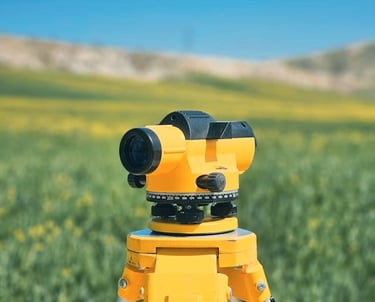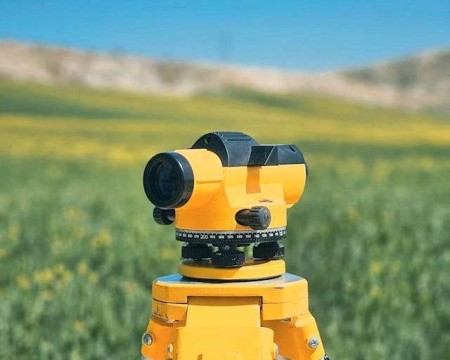 Lauko darbai – geodezininkas naudoja modernią geodezinę įrangą (GPS/GNSS imtuvus, tacheometrus), kad tiksliai išmatuotų reljefą, pastatus ir inžinerinius tinklus.